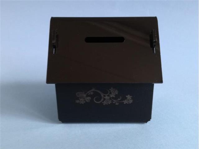 Hranilnik u obliku kuće sa krovom, krov se može skinuti.