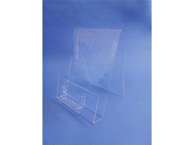 Iz prozornega akrila (pleksi stekla) deb: 3 mm, več listov, globina polnjenja 50 mm, globina polnjenja za vizitke 18 mm.